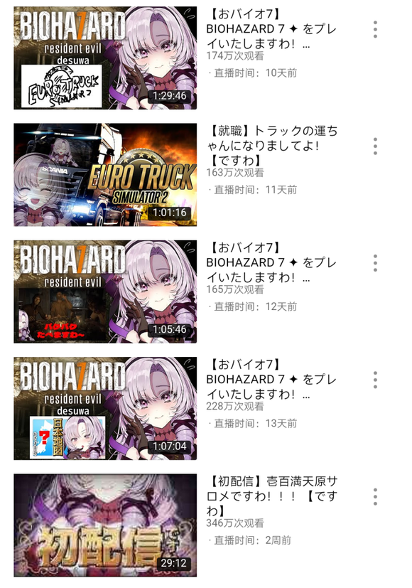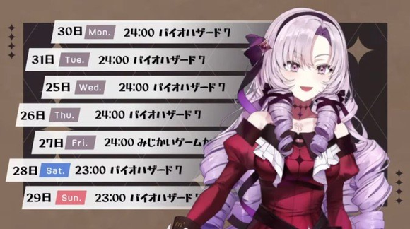 莎乐美的预定直播节目单也不走寻常路。1周内的节目中,有7分之6是《生化危机7》。