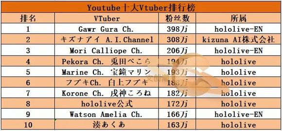当然,当前Vtuber的粉丝量排行榜前十,还是hololive的天下。动态是潤羽るしあ由于违反合同等原因与hololive解约、退出,湊あくあ成功补位跻身前十,宝鐘マリン反超白上フブキ从而第五第六互换位置。