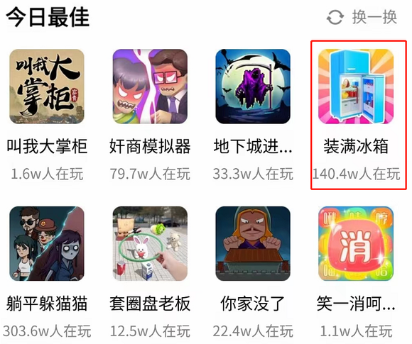 在海外市场上赢得海量玩家的《Fill the Fridge》的热度很快就传到了国内,一大批玩法类似的游戏在各个游戏平台中涌现了出来。这些游戏中,成绩最好的要数抖音小游戏《装满冰箱》。