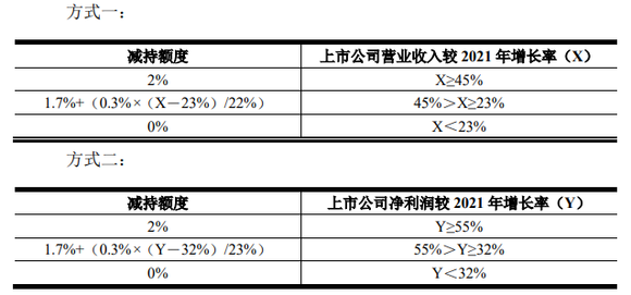 至于2024年、2025年的考核指标,核心员工离职率均不得高于该年年初约定的15%。业绩方面,若2024年上市公司营收增长较2021年增长不低于78%或净利润增长不低于85%,则王佳、严立夫妇及其一致行动人减持额度为4%;若2025年上市公司营收增长较2021年增长不低于102%或净利润增长不低于115%,则王佳、严立夫妇及其一致行动人减持额度为8%。