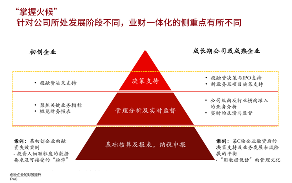 2)公司发展阶段不同,业财一体化的侧重点有所不同
