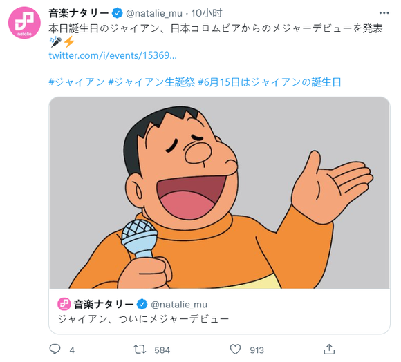 作为《哆啦A梦》系列中的重要角色,胖虎一直有一颗想要出道的心,从漫画到动画再到大长篇里面,胖虎的歌声一直伴随着大雄、哆啦A梦等角色的冒险和成长。