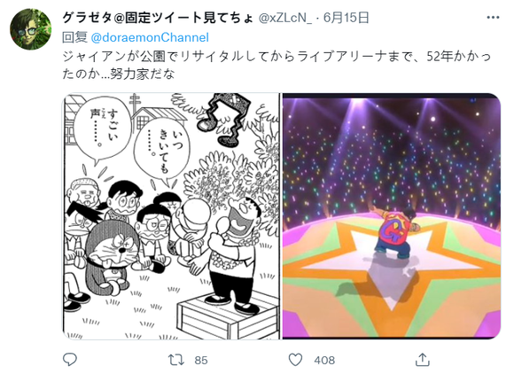 这首歌的歌词同样让粉丝们感受到了力量,有推特网友在官方频道下面评论道:“从胖虎在公园里的独奏会到现场舞台,用了 52 年……他是一个勤奋的人。”