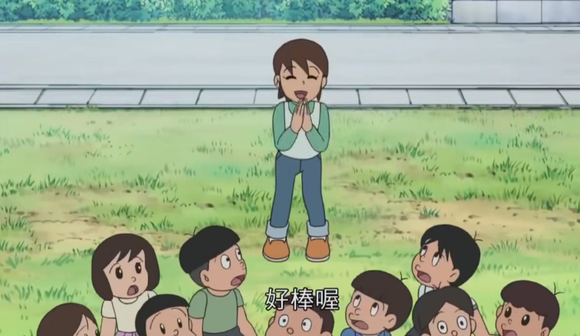 在本集中,胖虎又双叒叕在空地“邀请”大雄等人参加演唱会的时候,来自隔壁镇子的贵子正是被胖虎的歌声吸引到情不自禁地拍手叫好。