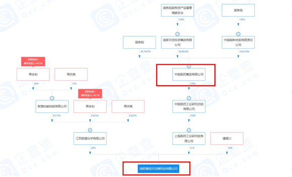 根据股权穿透图显示,上海医药工业研究院有限公司是国药集团旗下100%持股孙公司。这也就意味着,国药集团间接持有天目湖41%的股份。