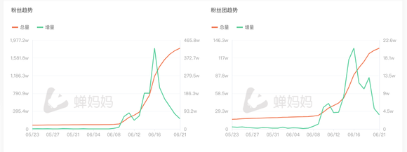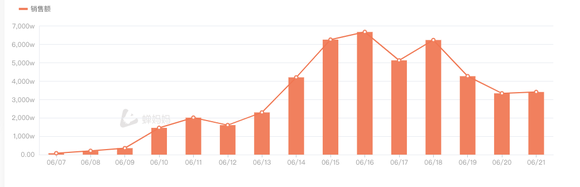其中,销售额从16日的6675万元,降到21日的3508万元,几乎腰斩。粉丝增量也从16日的423.5万下降到21日的53.7万。