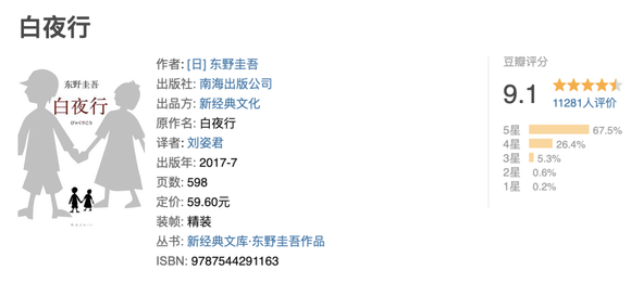 其一,是靠爆款作品来带动作者影响力,《白夜行》和《嫌疑人X的献身》就是拉动他其他作品的“两驾马车”,每隔几年,这两部作品就会被重新包装后再版,再加上影视改编的助推,这两本作品长期霸占了国内的畅销书榜单。直到现在,《白夜行》仍然是当当网热搜榜上位列第一的作品。