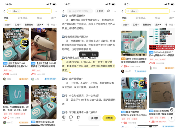 而根据一位购买了闲鱼SKG产品的用户所说“产品没有什么差别,用起来都一样。”