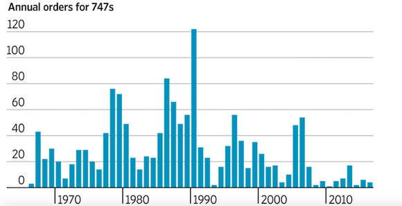 本月初的时候,空客宣布A380减产,加上现在747传来可能停产的消息,显示了巨型飞机受青睐的时代已经过去。刚刚结束的范德堡空展上,斩获订单最多的是波音737和空客A320neo这样的窄体单通道飞机。