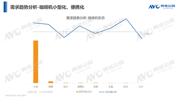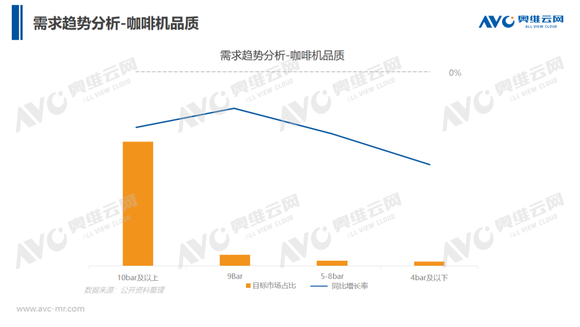 “四合一”咖啡机虽然目前目标市场占比不高,但增长率很高,表明消费者对功能集成化的咖啡机关注度不断提升,未来或有很大增长潜力。
