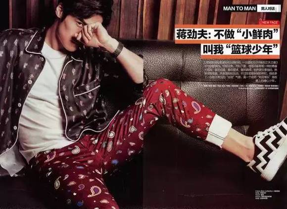 当红小鲜肉蒋劲夫也选择穿睡衣接受专访。