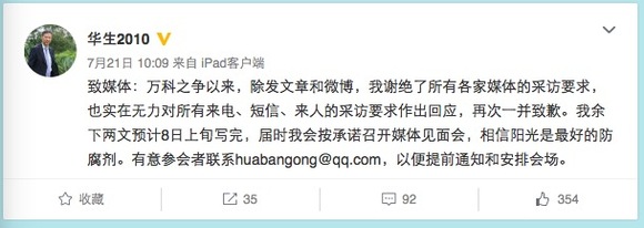 ▲华生微博截图