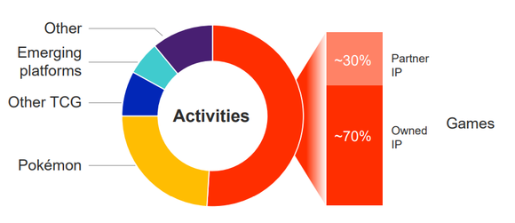 2021年是宝可梦IP诞生25周年,周年庆典、与环球音乐集团合作的音乐会等一系列动作,推高衍生产品销量,比如年销售额80亿元的桌游巨头Asmodee,宝可梦卡牌就贡献1/4收入。