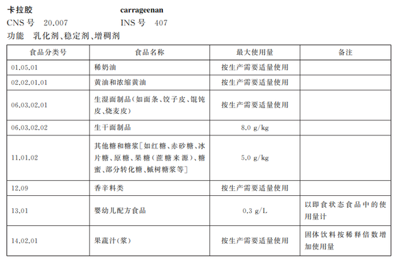 (《食品安全国家标准食品添加剂使用标准》中关于卡拉胶)