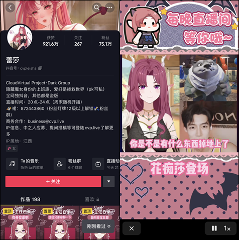 2020年,CloudVirtual Project就扎入了抖音虚拟主播赛道,其负责人明茶表示新播场:“我们算是第一家成体系在抖音跑(虚拟主播)的机构。”