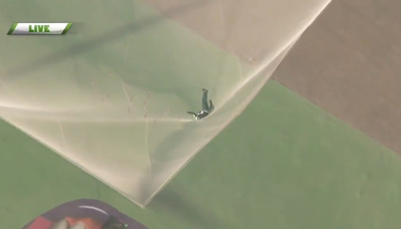 福克斯电视台对持续两分钟的坠落过程进行了直播。42岁的埃金斯下落速度达到每小时193公里。
