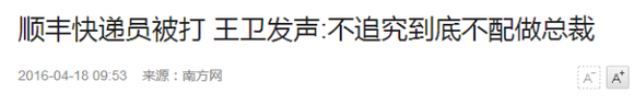 此事曝光后,顺丰快递总裁王卫公开表态将“追究到底”,否则不配当总裁。