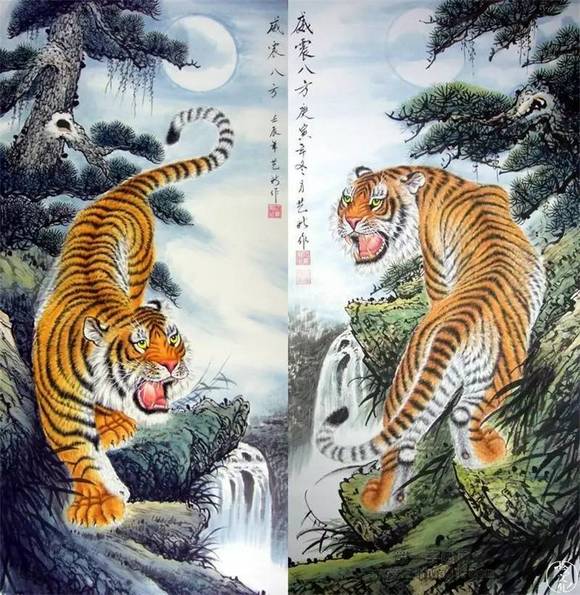 老虎生活于山林之中,中国画里有威风凛凛的“下山虎”(下山捕猎,寓意大展宏图),霸气无边的“上山虎”(捕猎结束,寓意满载而归),唯独没有在平川的老虎,因为中国有句老话叫“虎落平阳被犬欺”。