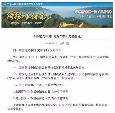 根据国务院侨办规定:中国公民已取得在住国长期或者永久居留权,并已在住在国连续居留两年,两年内累计居留不少于18个月,才可被视为华侨。