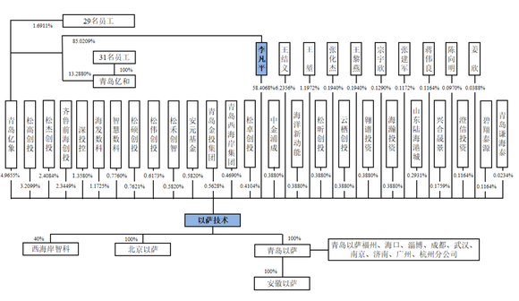 目前,以萨技术的控股股东、实际控制人为李凡平,其直接持有公司58.4068%的股份,并通过青岛亿象间接控制公司14.9655%(上图数据错误)的股份,合计控制公司73.3723%的股份。