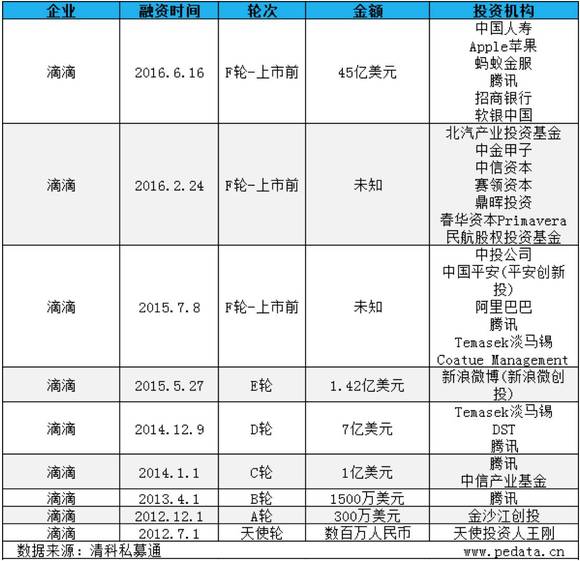小编从私募通数据库中查询了一下这两家公司背后的投资机构,发现两家背后的投资机构实力雄厚,国家队成员(招商银行、北汽产业投资基金、中投公司、中国平安、中国人寿等等)、三大巨头(阿里、腾讯、百度)、国外知名机构(软银中国、Apple苹果、Coatue Management等等),而且中国人寿在这两家公司都进行了布局,不知道是钱多,还是有眼光(如果滴滴和优步中国合并),(事实证明中国人寿有眼光)。