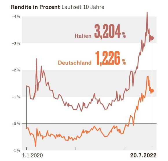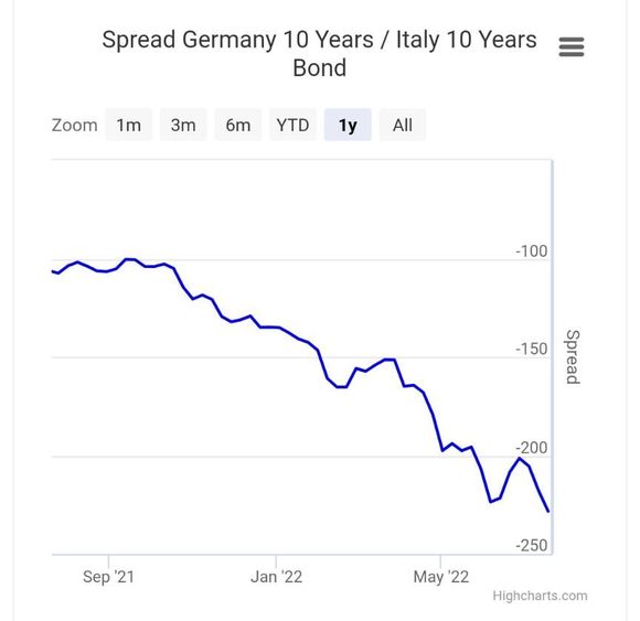 今年年初以来,德国10年期国债收益率从-0.2%攀升至目前的1.226%,意大利10年期国债收益率则从1%升高至3.2%,两国国债收益率利差已从140个基点扩大至245个基点。