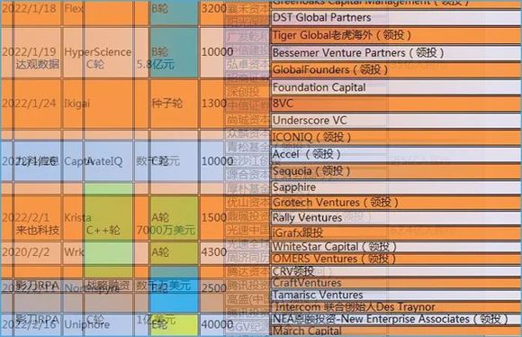 2月11日,智能RPA厂商Northspyre获得2500万美元B轮融资,由CRV领投,CraftVentures、Tamarisc Ventures 和Intercom 联合创始人 Des Traynor等参投。