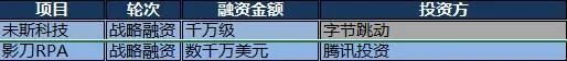相较于去年企管软件的战略投资,今年上半年我们能看到互联网巨头也开始真正通过投资进行RPA的战略布局。字节跳动战略投资了未斯科技,腾讯则战略投资了影刀。