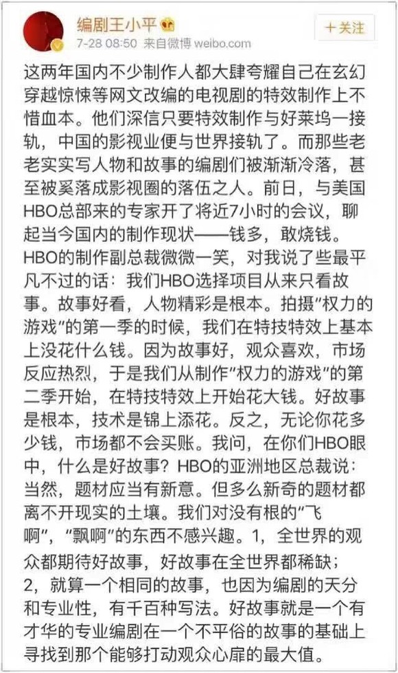 HBO热卖系列《权力的游戏》,卖得好的前提在于剧本本身的扎实功底,再由观众埋单来决定是否还要延续下去,而在中国的投资人眼里,花大价钱买一个表面金碧辉煌的装置物划算过那些磨砺多年的粝石,一部电影如《封神传奇》这样一出世便含着金汤勺的公子哥,有如向家的秉性一样,品相虽好,却不能够真正打动观众。