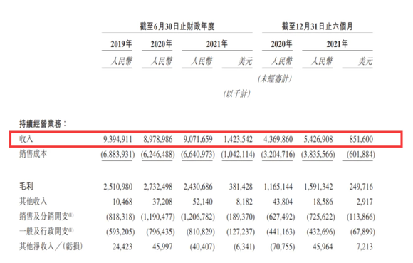 如今,从营收来看,名创优品距离“千亿”还相差甚远。《招股书》显示,2019-2021年,名创优品分别实现收入93.95亿元、89.79亿元及90.72亿元。