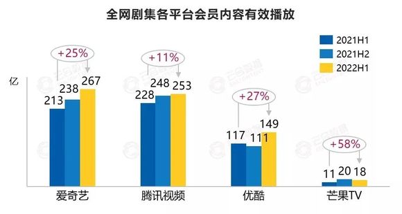 不只是爱奇艺,2021年年末,芒果TV有效会员数达5040万,同比增长40%。另一边,据云合数据,今年上半年芒果TV全网剧集会员内容有效播放同比上涨58%,同比增长率居长视频之首。