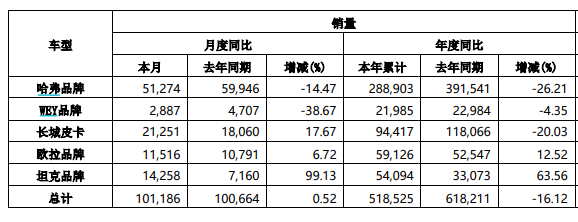 来源:长城汽车公告