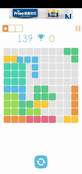 《1010!》是一款轻度消除类游戏,游戏界面仅由一个10×10的方格和几个随机形状的方块组成,玩家需要将方块放进方格,填满一排或一列即可实现消除。
