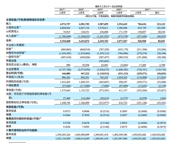 今年7月26日,猎豹移动也发布了他们2021年的全年财报,财报数据显示,他们在2021年实现营收7.846亿元,同比下降了49.47%,同期净亏损为3.511亿元,上年同期则是净利润4.167亿元,同比下降了184.26%。