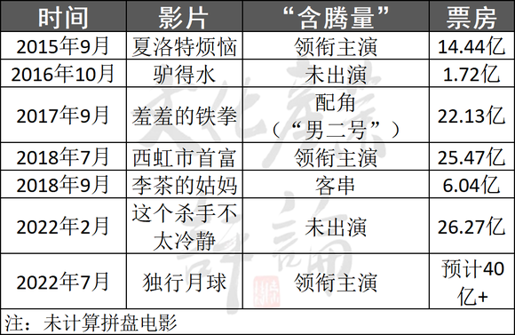 但如果再梳理一下沈腾出演的非开心麻花电影,不难得出一个事实:恐怕是沈腾的因素更大一点。