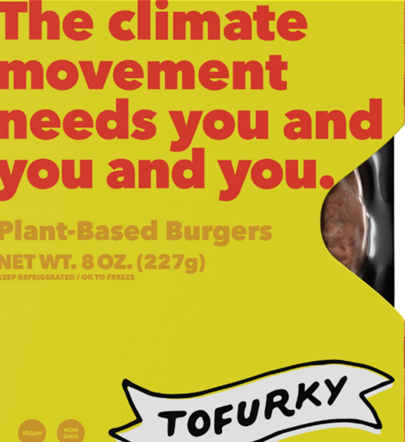 密歇根大学进行的一项研究发现,以植物为基础的肉饼相比传统肉质肉所产生的温室气体排放减少了90%,生产所需的能源减少了46%,对水源短缺的影响减少了99%,对土地使用的影响减少了93%[5]。Tofurky一直专注于创造美味且价格合理的素食替代肉类,为了激励消费者更多选择减少温室气体排放的植物肉,Tofurky推出全新包装,将应对气候变化的呼吁置于包装首位。其中包含六条口号以及消费者可以采取的行动,例如“气候变化影响所有人”,醒目的标语使得Tofurky在超市的货架上成为支持对抗气候变化的广告牌。