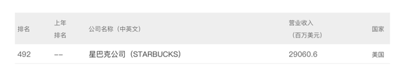 引人关注的是,星巴克今年重返世界500强榜单了,并替代康帕斯集团成为了这一子榜单的“独苗”。最新榜单显示,星巴克在2021年的营收为290.606亿美元,成为500强中的第492名;而去年拿下第395名的康帕斯今年居然没有上榜。
