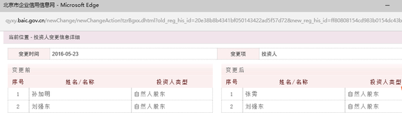 其中,京东商城“经营性网站备案信息”中的备案主体“北京京东叁佰陆拾度电子商务有限公司”,是刘强东最为重要的一家公司。该公司法人代表仍为刘强东,但股东信息在今年5月23日,已经由京东创业元老孙加明、刘强东变更为张雱、刘强东。7月21日,股东再次变更,增加了一位李娅云。