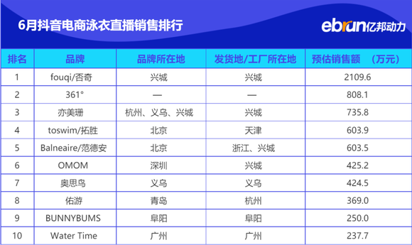 比基尼广场是兴城著名景点,一个红色比基尼造型的海边广场。盛夏夜晚,不少泳装主播会在这里直播带货。亿邦动力调查发现,今年6-7月,抖音电商泳衣直播品牌榜TOP10,有2家注册在兴城,4家从兴城发货,即Balneaire范德安、亦美珊、fouqi否奇、OMOM。