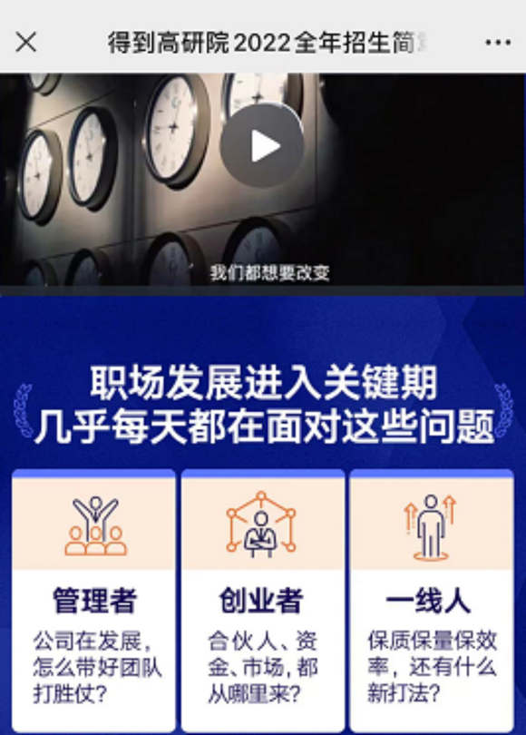 据以往高研院的学员表示,想要尽快“入学”最好要有推荐人,可以是往届的学员或者是行业优秀人士引荐,而在北京参加高研院的学员还有机会见到创始人罗振宇。其中一位学员还表示自己通过罗振宇的直播课受到了很多启发,就拿塑造自己的朋友圈为例子,要尽量用自己的实名。因为不管一个人的花名用了多久,实名是个人IP职业化第一个步骤。并且通过在朋友圈中多多发表阶段性的议题,来加强互动。
