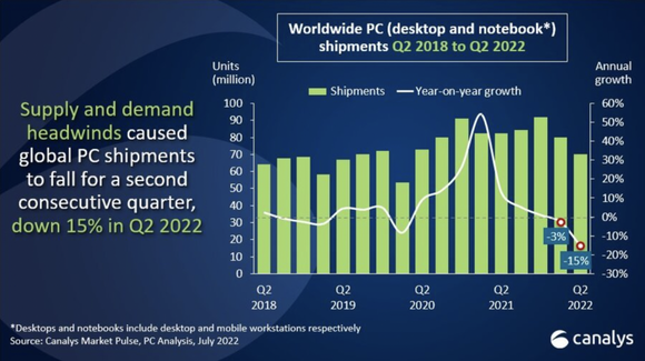全球PC市场曾连续七个季度高歌猛进,保持正增长,但到了2022年,这一趋势戛然而止。