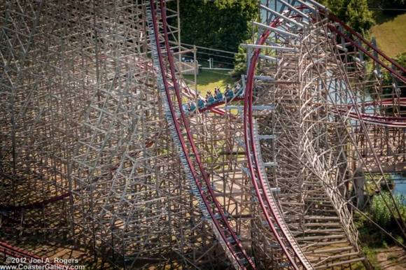 在寸土寸金的硅谷中心圣塔克拉拉(Santa Clara),有一个隐于闹市的游乐场:大美国(Great America),但这个小小的乐园里竟然深藏了很多足够让你“心跳”的项目,还有目前全北美最高且最快的木造云霄飞车Gold Strike。据统计自1976年开放以来,这里共发生了5起死亡事故。