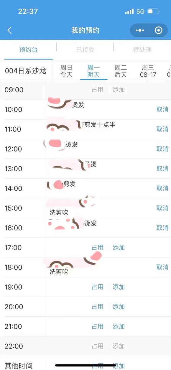 ▲ 安雅的预约单,从早上开始一个接一个。图 / 受访者提供
