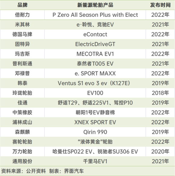 据统计,目前已有十几家国内外轮胎品牌推出新能源汽车专用轮胎,布局新能源汽车赛道。