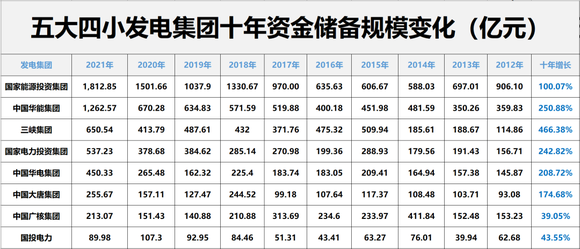 8.资金储备超5337亿,十年间增长近163.17%。国家能源投资集团和华能集团资金储备规模均超1000亿。