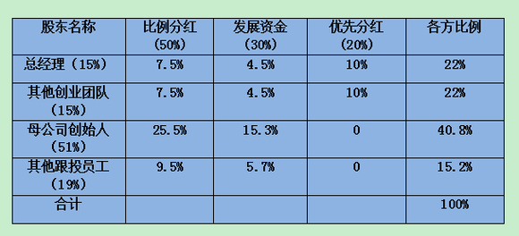 20%税后利润——创业团队优先分红