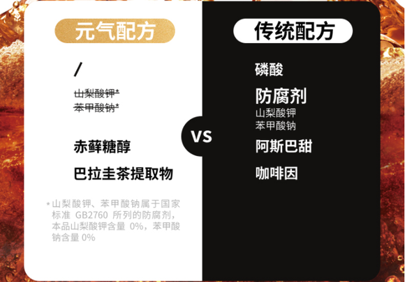 元气配方和传统配方对比;图片来源:元气森林天猫官方旗舰店