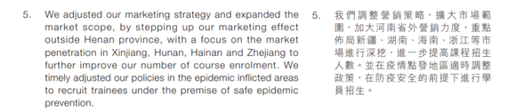 除了向下沉市场开发,向中国际还试图向省外延伸,“扩大市场范围,加大河南省外营销力度,重点布局新疆、湖南、海南、浙江等市场进行深挖,进一步提高课程招生人数。”