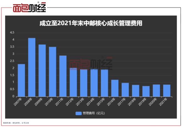 根据财报数据统计,自成立至2021年末,中邮基金从“中邮核心成长混合”上收取的管理费用高达29.68亿元。