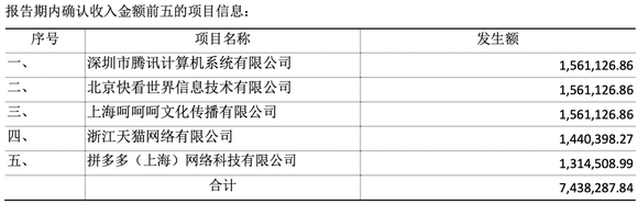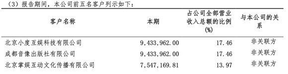 妙音动漫67.46%的收入来源于前五大客户,包括小度互娱、成都音像、北京掌娱、武汉博润通、宁波善德。